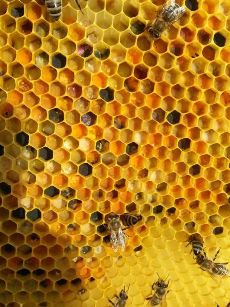 Pollen, die Nahrung für die Larven der Bienen, vielfältig und bunt. Die Farben der Natur, ein toller Anblick für das Imkerherz.